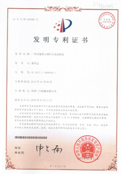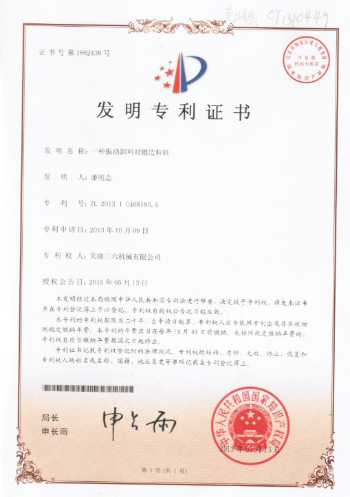 • 發(fā)明專利證書(shū)